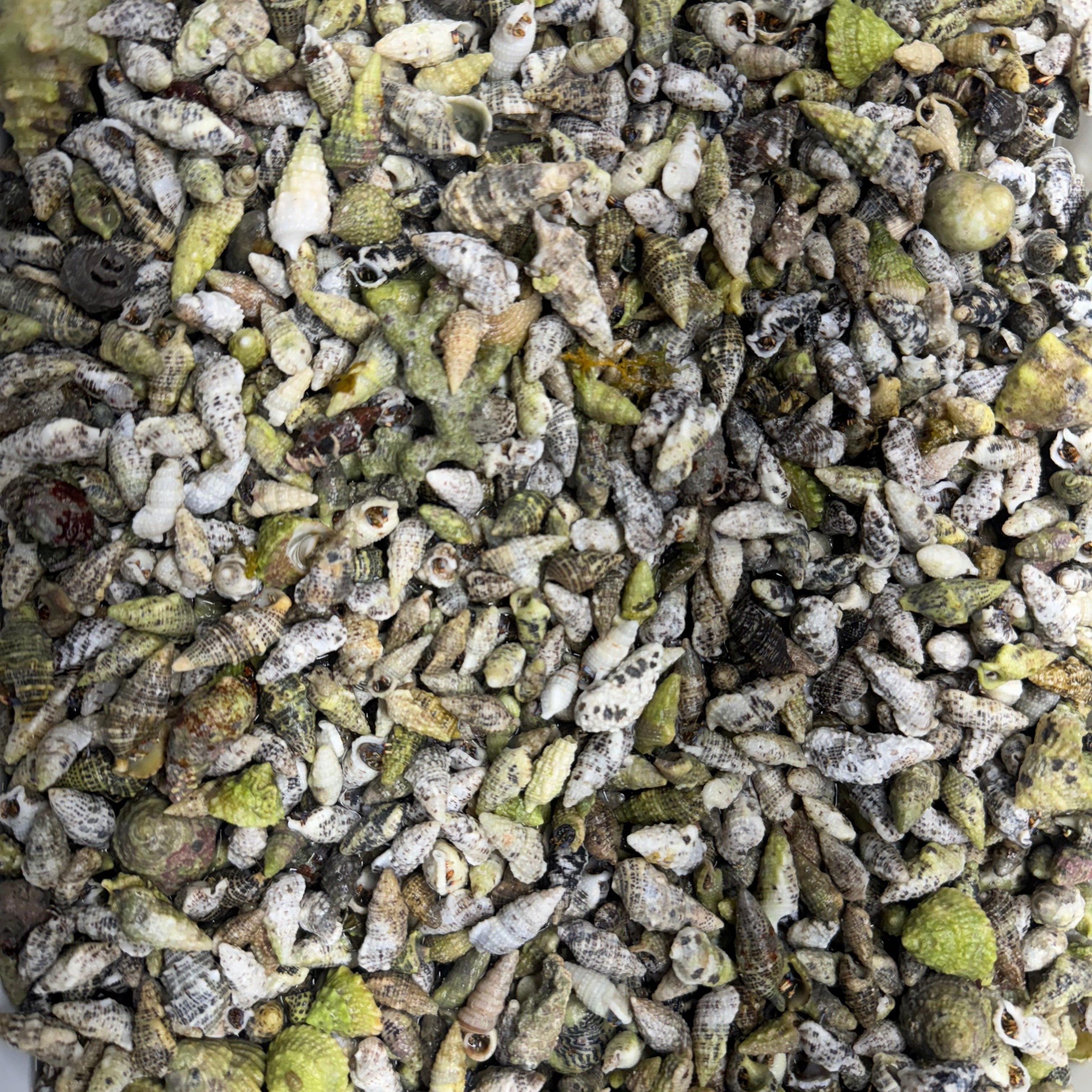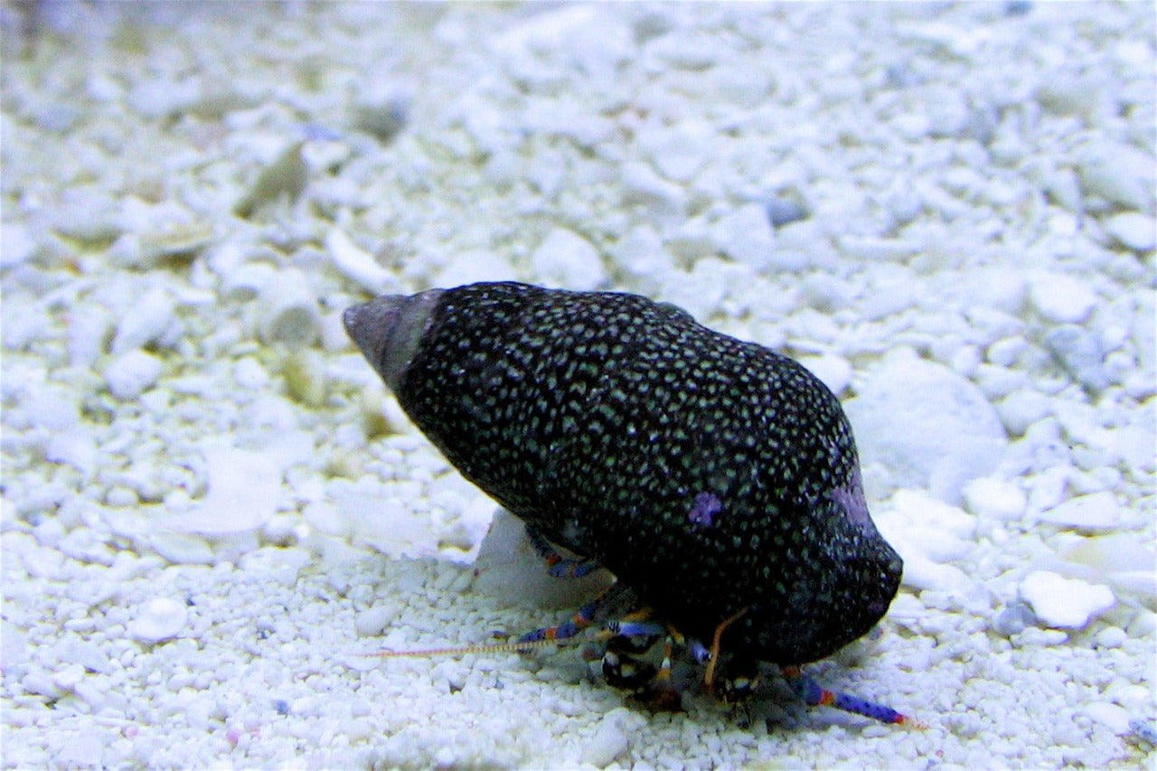 We offer two sizes of Clibanarius tricolor, and we hand-select only true Blue Legs (not the look-alike species that show up in mixed shipments). Both sizes pull their weight, just in different ways.