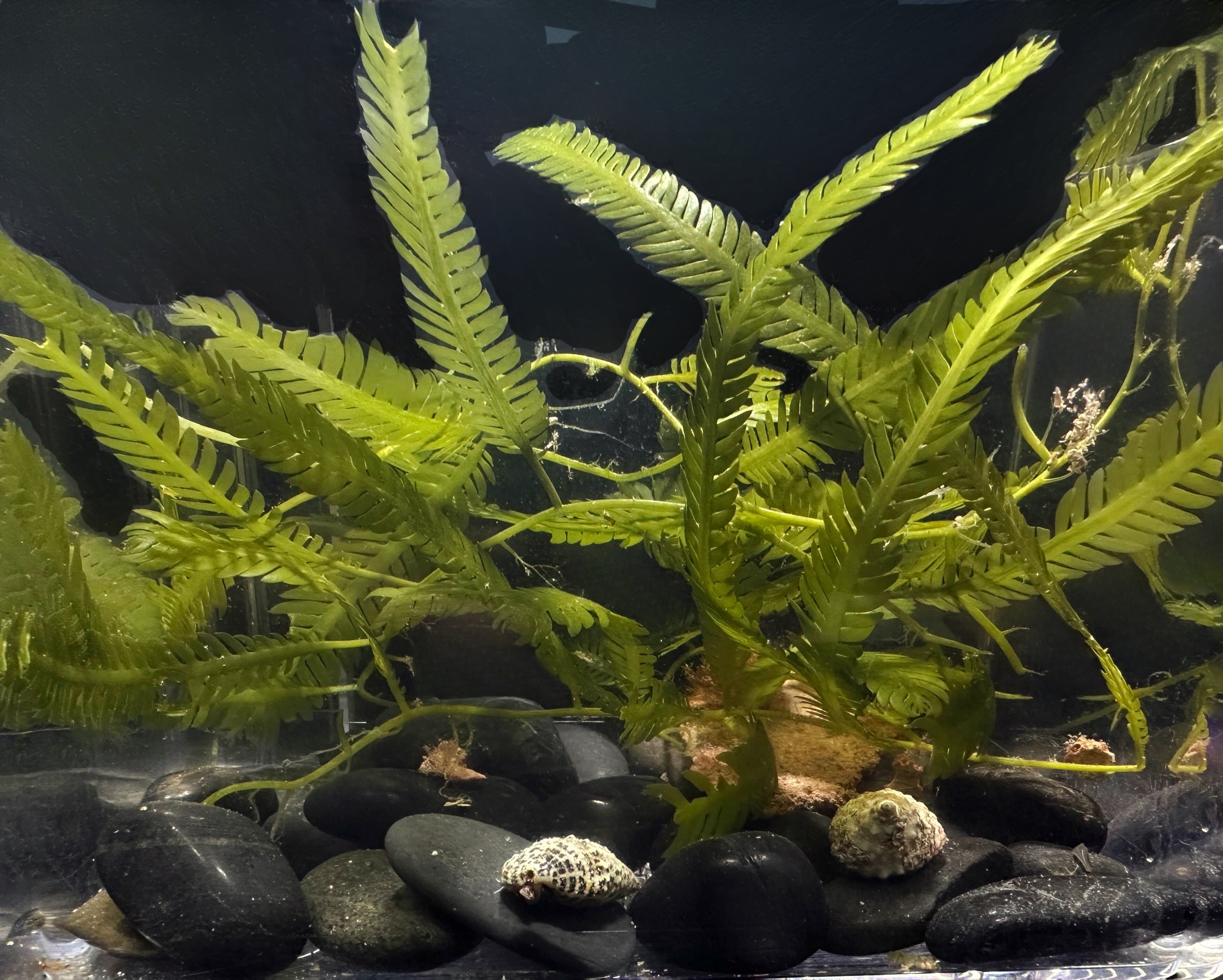 Each frond grows from a creeping rhizome and is divided into tight, evenly spaced segments with slightly rounded tips. In higher flow it tends to form compact, tidy fronds that hug closer to the substrate. In calmer conditions, the segments stretch into broader leaflets that can reach up to about 6 inches in height, giving a fuller, more leafy appearance. We collect this species from shallow protected areas in the Gulf of Mexico and Atlantic, where it anchors to rock, rubble, sand, or mud.