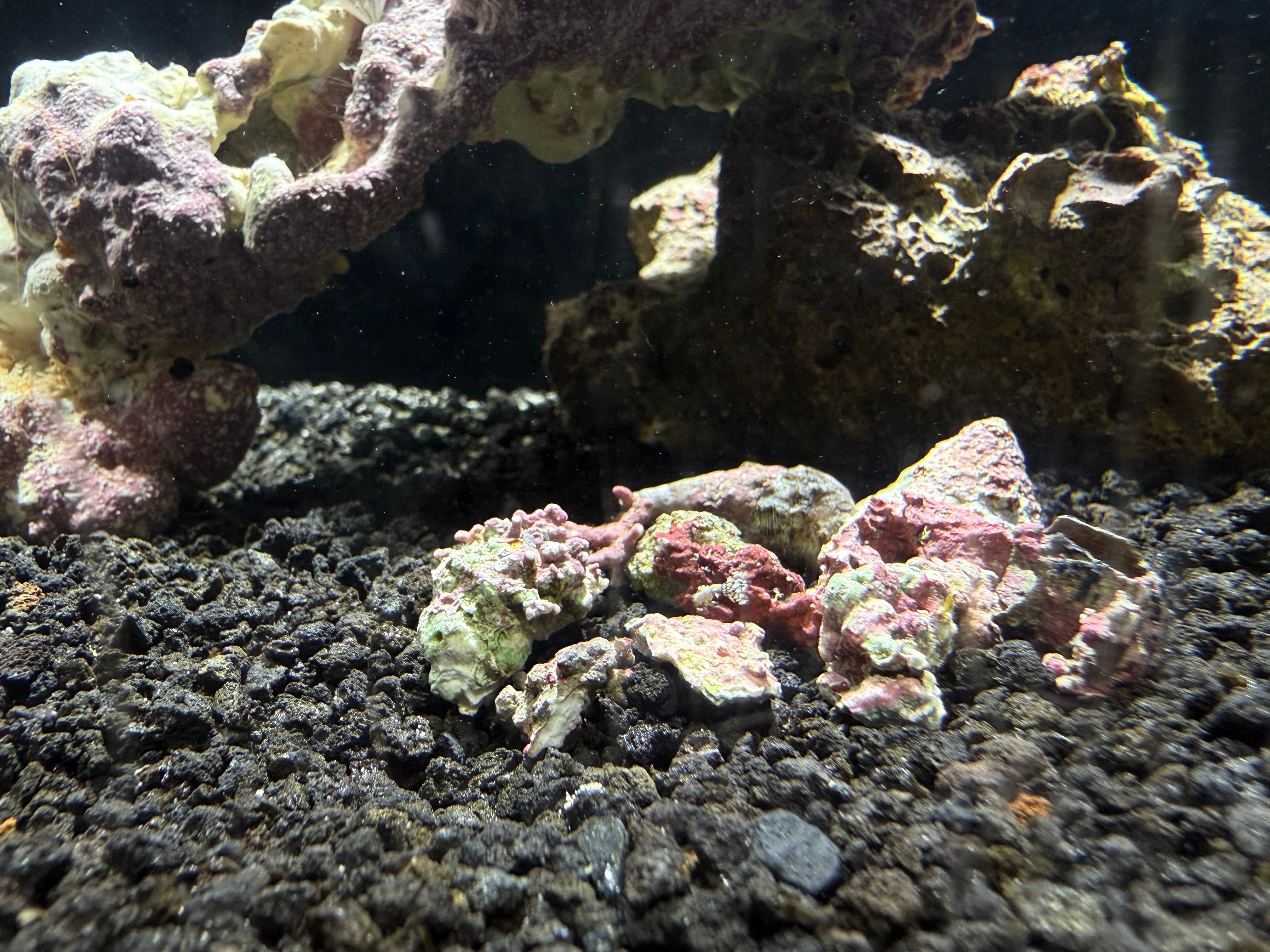 An assortment of 10 small pink coralline clusters for adding to the aquarium substrate. These small clusters grow naturally in the sand bed offshore in the Gulf of Mexico adjacent to reefs and limestone ledges. They're some of the hardiest species of branching coralline algae for the aquarium and will also help seed coralline algae growth. Calcified macro algae requires ample amounts of calcium present. Sold as an assortment of 10 small clusters most of which are about 1/4" in diameter.