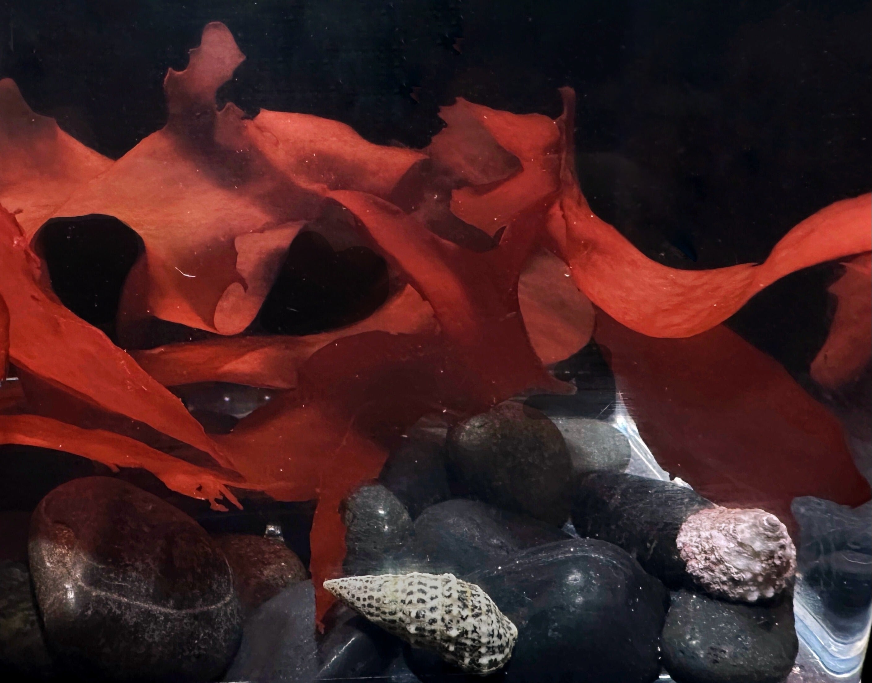 A soft, gelatinous red macroalga with smooth, flowing blades that move like silk in the current. We collect several native Halymenia species from Florida and the Caribbean, including H. floridana and H. floresia. Forms range from compact rounded fronds to long ribbonlike sheets, depending on depth and light. Expect rich crimson to orange red under aquarium lighting and natural variation in texture and shape.