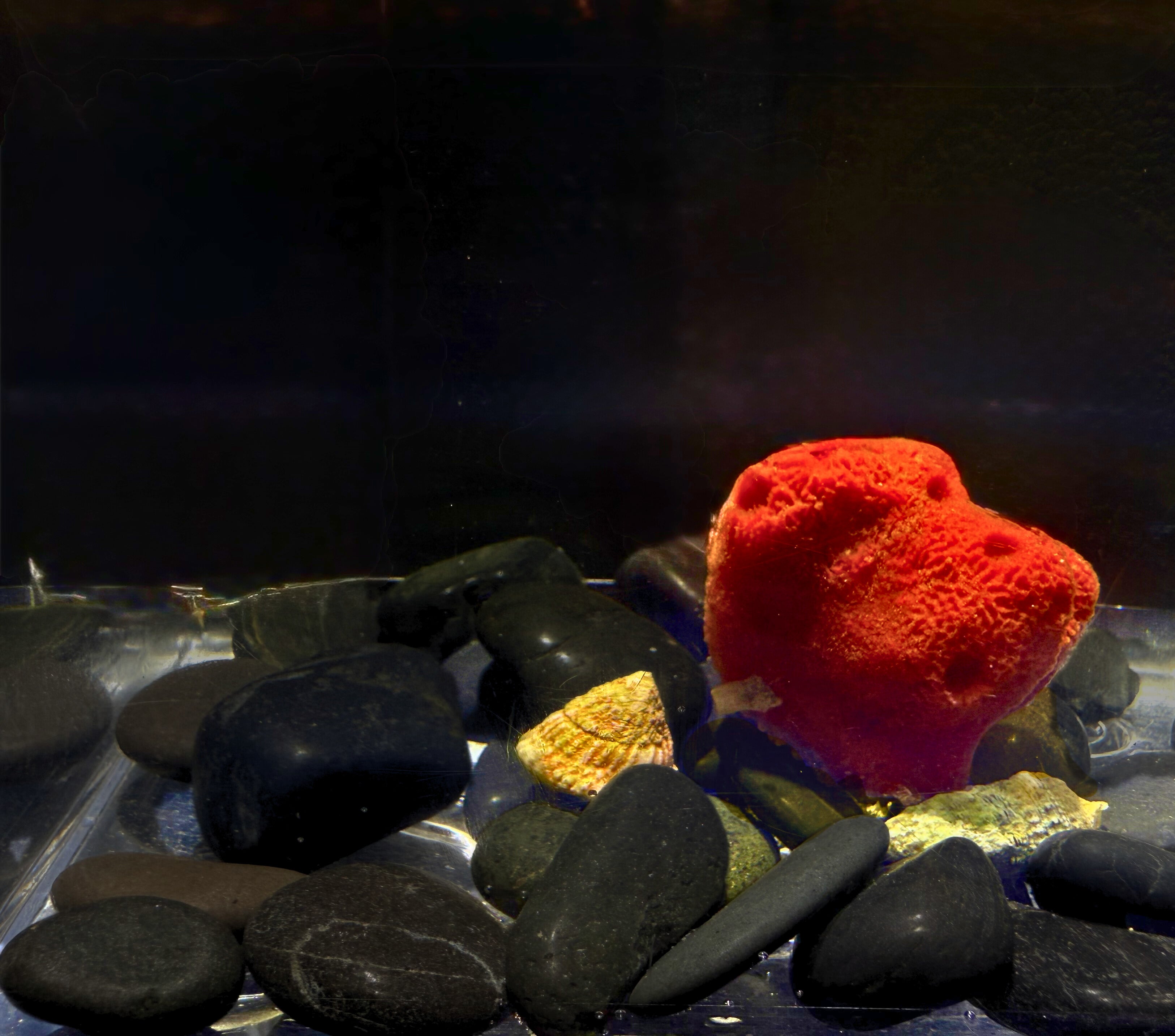 During acclimation, a brief transfer through the air is generally well tolerated, but avoid letting the sponge dry out or trapping air inside its channels. A slow, deliberate submersion with a gentle tilt helps release any bubbles and protects the internal structure.